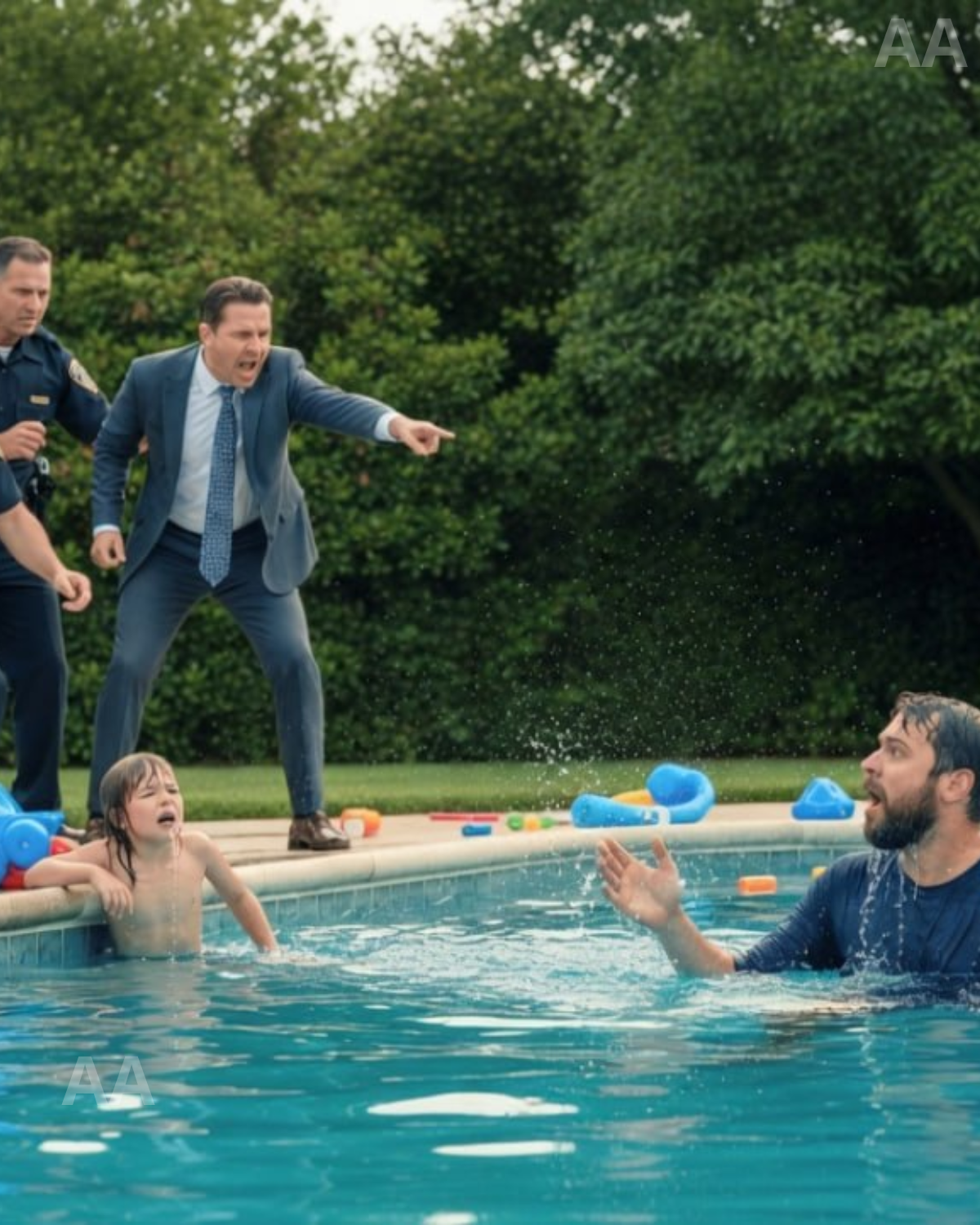 I vaulted the fence like it wasn’t even there, landed hard on the other side, and ran straight for the pool. Shoes on. Phone in my pocket. Didn’t matter.