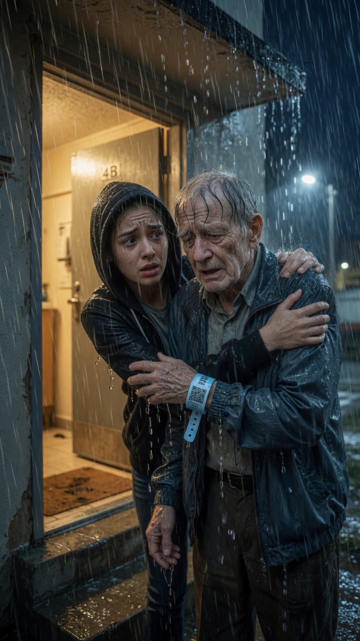 He was eighty-one, all stubborn posture and thin bones, shivering so hard I felt it in my own arms when I caught him. His hair was plastered to his scalp. Water streamed off his sleeves and pooled on my threshold. His skin had that chilled, papery look that made my brain flash to hospital sheets and freezer aisles.
