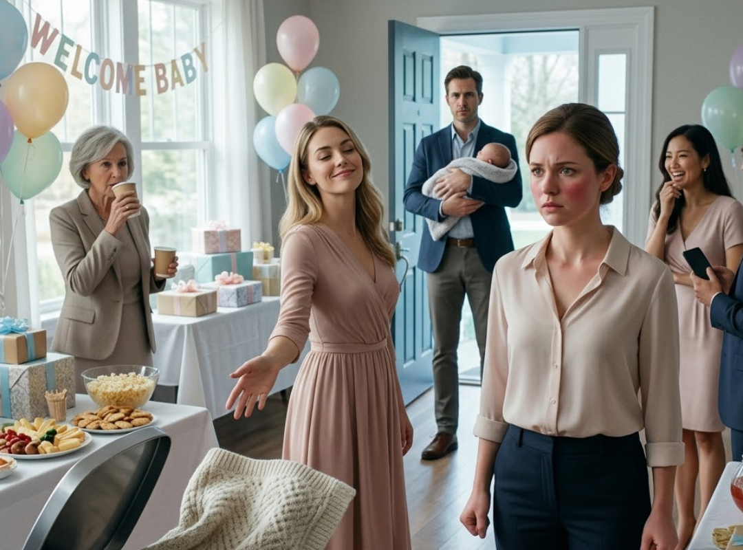 “Still dirt poor, honey? At my sister’s baby shower, she threw away the gift I made myself. Then, a man walked in carrying a baby… and the whole room froze.”