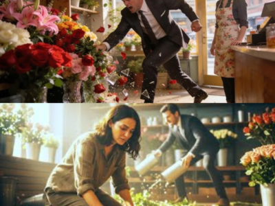 And now, standing amidst the ruins of her shop, surrounded by broken glass and crushed flowers… she finally looked at him with a calmness he couldn’t explain.