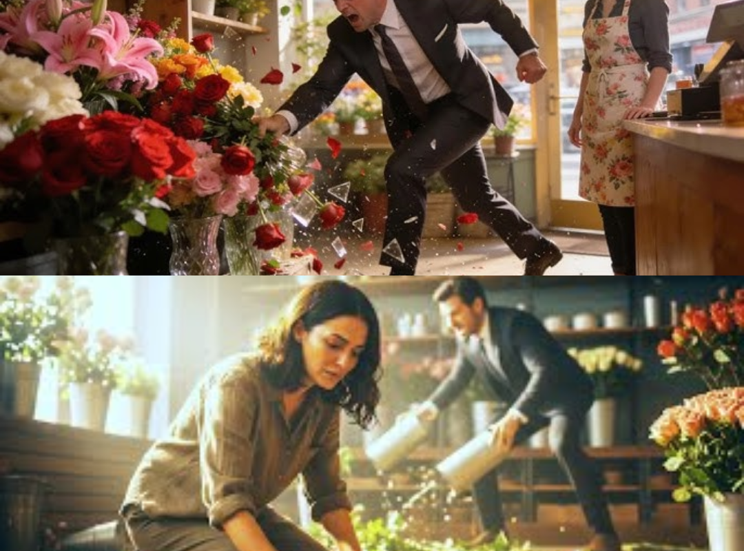 He destroyed her flower shop as if it were nothing – shattered glass, scattered petals, years of her life crushed in minutes. To him, it was just business. An obstacle in the path of a deal. A small shop standing where something bigger, more profitable, more “important” should have sprung up. So he didn’t hesitate. No questions. No listening when she tried to speak. He just acted. Cold. Efficient. Ruthless. What he didn’t see… was her true self. And now, standing amidst the ruins of her shop, surrounded by broken glass and crushed flowers… she finally looked at him with a calmness he couldn’t explain. Because in that moment— He was no longer in control. He is the one who just destroyed the only person who knew the truth… about what he owed. And what was about to be taken from him.